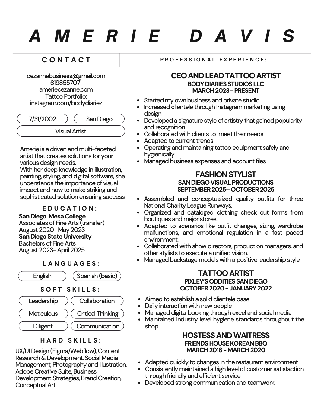 2025 San Diego State University graduate, earning my BA in Fine Arts with an emphasis in Illustration. Since I was a child, art and design has always been a passion of mine. Now I’m looking for opportunities to be a part of something bigger than me.
